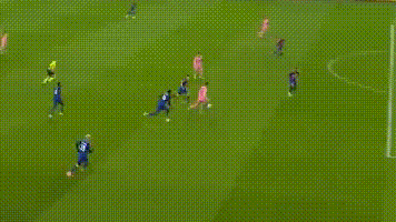 到了第74分钟,场上比分已经3-0,按普通球员的思路,大概率开始节省体力,反正比赛也差不多了。梅西没有,他又一次在反击中拿球。这球看起来像是随脚一磕,其实他用脚内侧轻轻一推,球走的是防线身后最让后卫难受的那条线——你回撤,担心自己捅进自家大门;你不回撤,阿连德就直接拿球单刀。