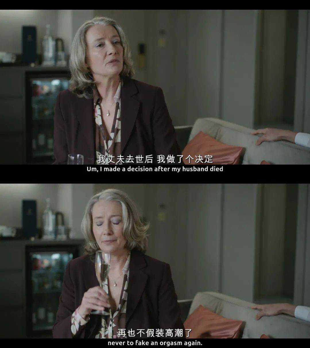 这是一部话剧式的电影,人物、场景、时间和故事都是高度集中的。两位主角的四次会面都在同一间酒店的房间里进行。而且与世俗眼光中浅薄的买卖关系不同,作为提供服务方的Leo,他更像是一个性心理治疗师。他通过与Nancy之间大量的、深入的对话,引导她一步步解放自己的身体与思想,让她重获自信与魅力(Nancy还因此对当年被自己荡妇羞辱的学生诚恳道歉)。